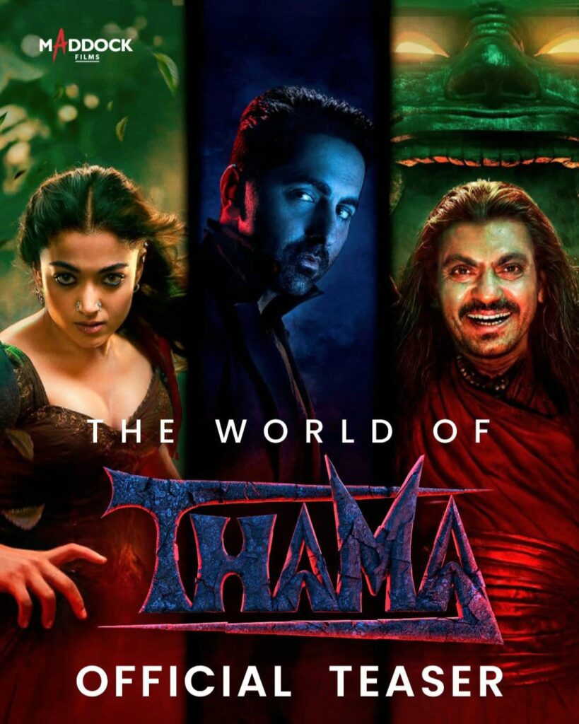 Thama Teaser Review 2025 – आयुष्मान खुराना, रश्मिका मंदाना और नवाजुद्दीन सिद्दीकी स्टारर मैडॉक फिल्म्स की नई हॉरर-कॉमेडी। दिवाली 2025 पर सोलो रिलीज होने वाली यह फिल्म इंडियन हॉरर यूनिवर्स को नया मोड़ देगी। जानें टीजर की खास बातें, कमियां और बॉक्स ऑफिस पर इसके संभावित धमाके।